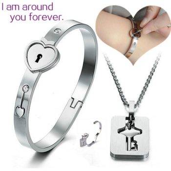 Heart Lock Bracelet & Key Necklace For Couple