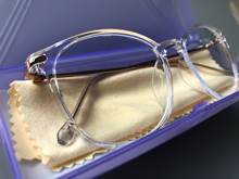 The glasses are lightweight, match the photos, and packaged in a plastic case to ensure they don't break. They also come with a cloth.