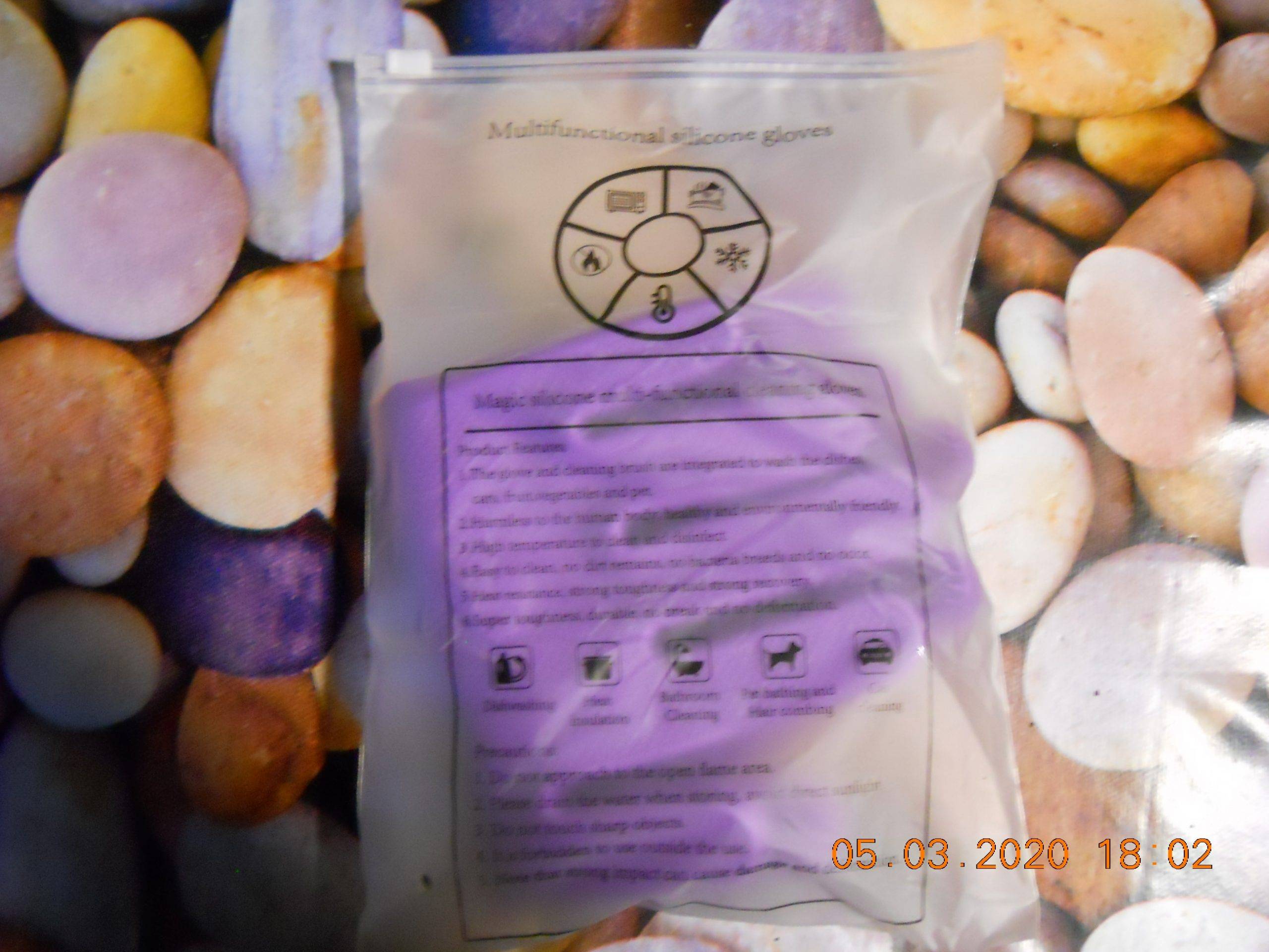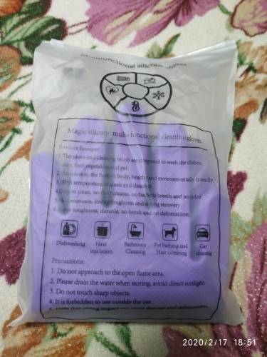 Ordered January 6, received February 26. Received ukrmail in the usual package. To the gloves were whole. After testing gloves when washing dishes, I concluded for myself, they are uncomfortable. When you wash the dishes sometimes you want to wash with your finger in some places it is not convenient, but on the gloves on the bend of the finger there is no bristles, it does not allow you to wash well. That is, it is useless, you have to take for this other accessories