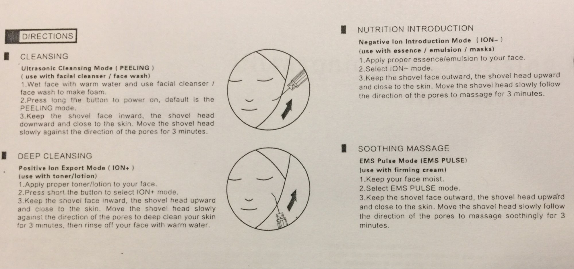 Delivery is fast, took by self-delivery from the courier service. With the store, too, communication pleased, there were questions, answered very promptly and politely. The product itself liked, my skin is not in a running state, but after use became smooth, clean (this is subject to use only 1 time), I'm sure it will be better further. I tried the EMS mode-I do not know how to others, but I'm very much aware of these volumes) in general, I'm happy with the new purchase, I recommend to buy!