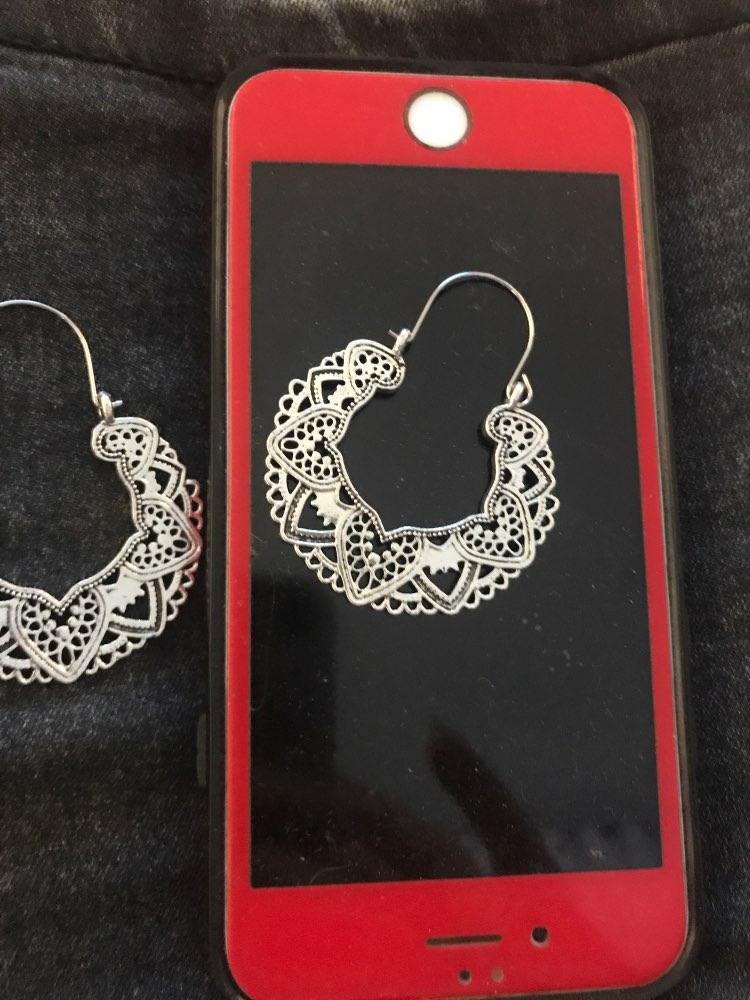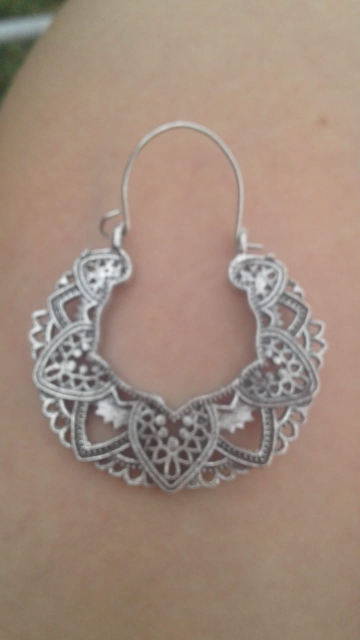 Mi primera impresión ha sido muy buena,los pendientes son super guapísimos, pedí 3pares(fotos),muy brillantes,preciosos(pero,cuidado,no es plata),se me pusieron las orejas rojas porque cuesta un poco meter el cierre,es difícil perderlos. Son como una chapa metálica,adornada, muy bonita,en la oreja pesa un poquito y se mueven,pensé que serían pequeños,pero son grandes. Mi valoración es muy positiva,para ti o para regalar,vas a quedar muy bien. Muchas gracias señor vendedor,su servicio ha sido excelente,recomiendo mucho su tienda y sus productos. Chicas son muy bonitos y baratos,aprovechad!!!